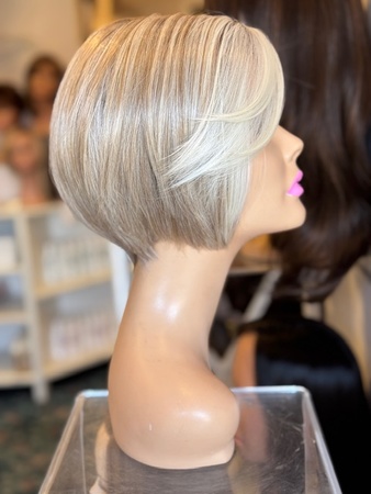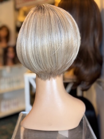 Lace front adds a natural hairline look to this classic chin-length bob. This style can come in a longer length bob.