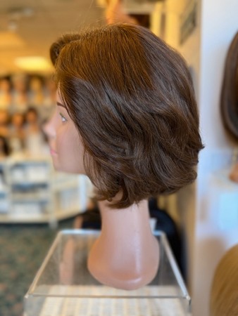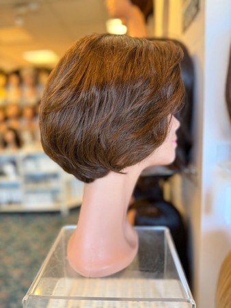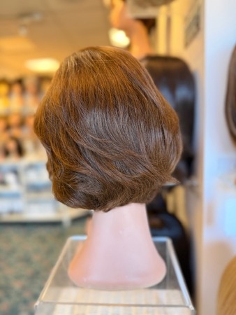 Carrie is a light hair density wig that features a lace front that extends seamlessly from ear to ear with a slight bangs that's versatile. Can be worn front or side bangs. Easy to wear bob with a soft volume.