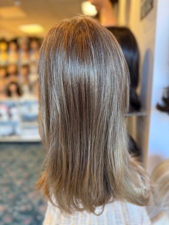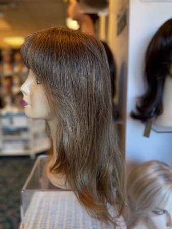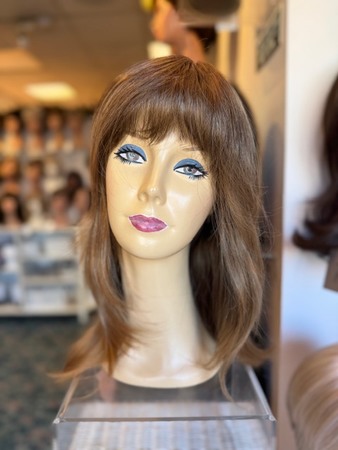 This straight ready-to wear wig will flatter your face and neck with its long layers and whispy bangs that are flattering. Its Double Monofilament cap construction is combined with calibrated machine wefting along the sides and back.